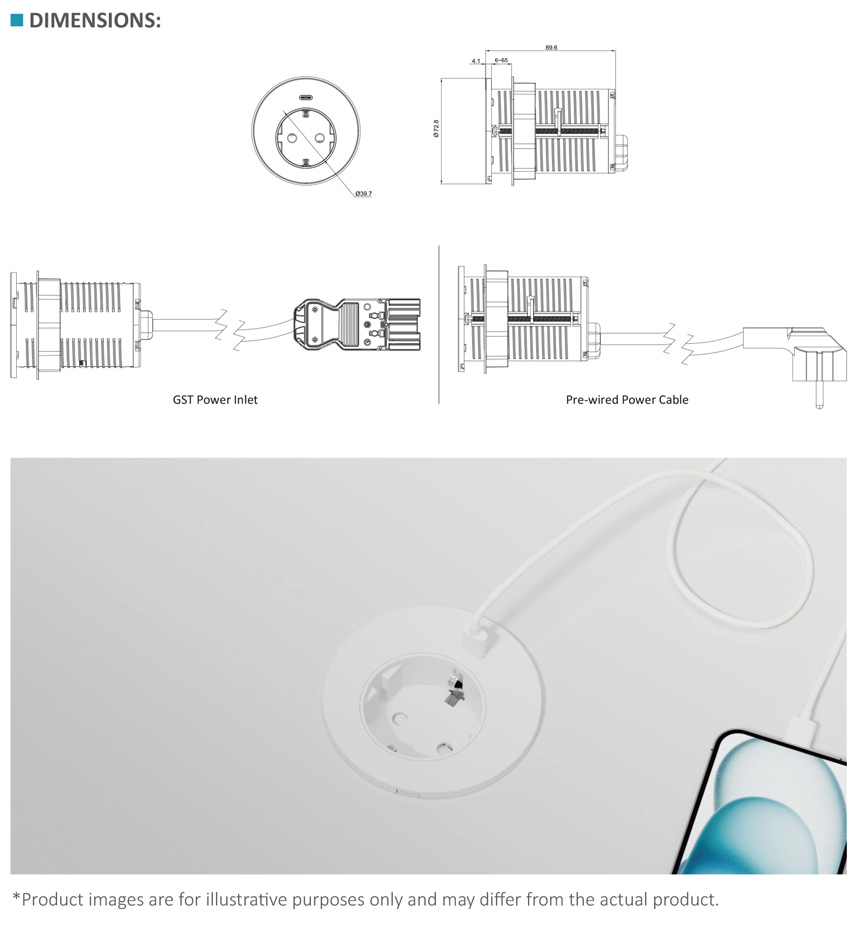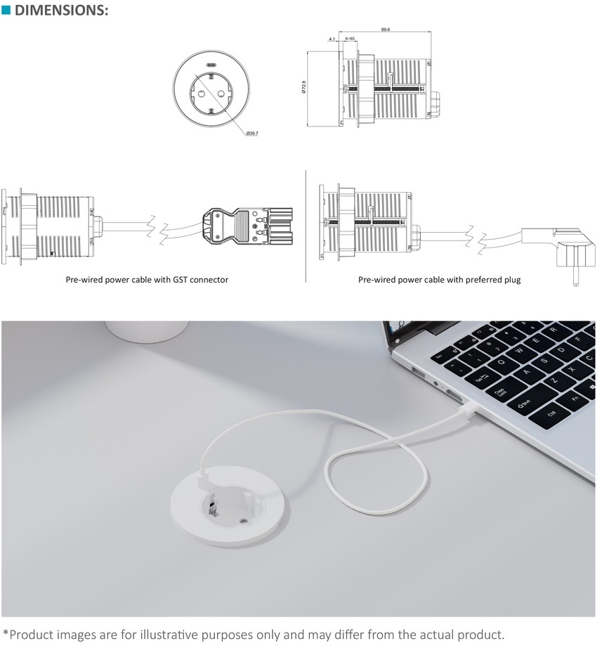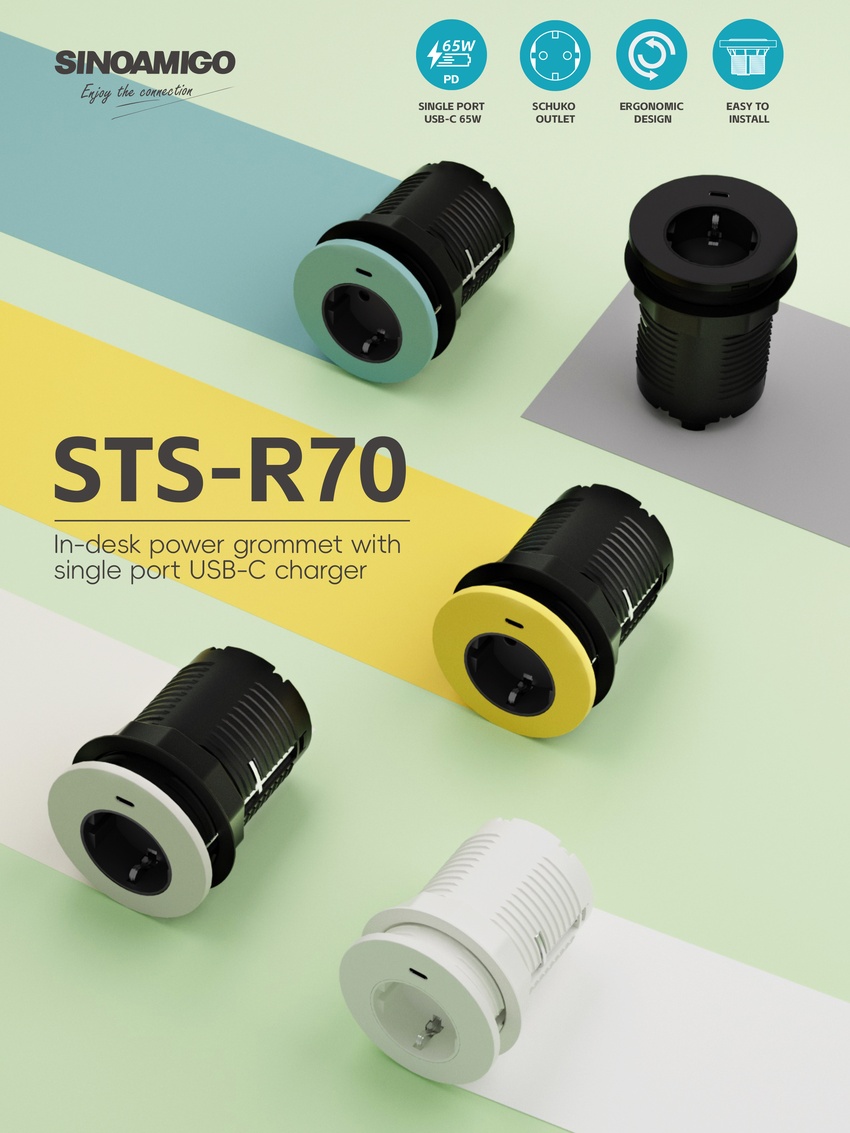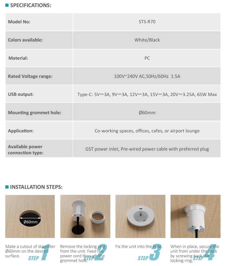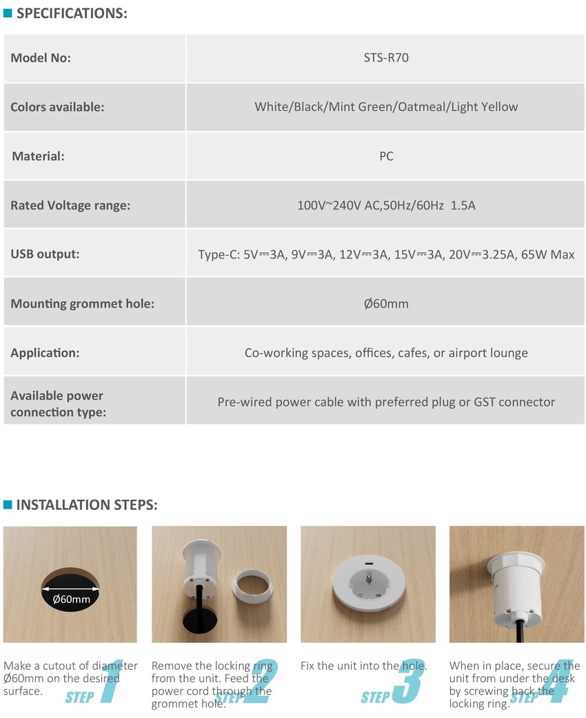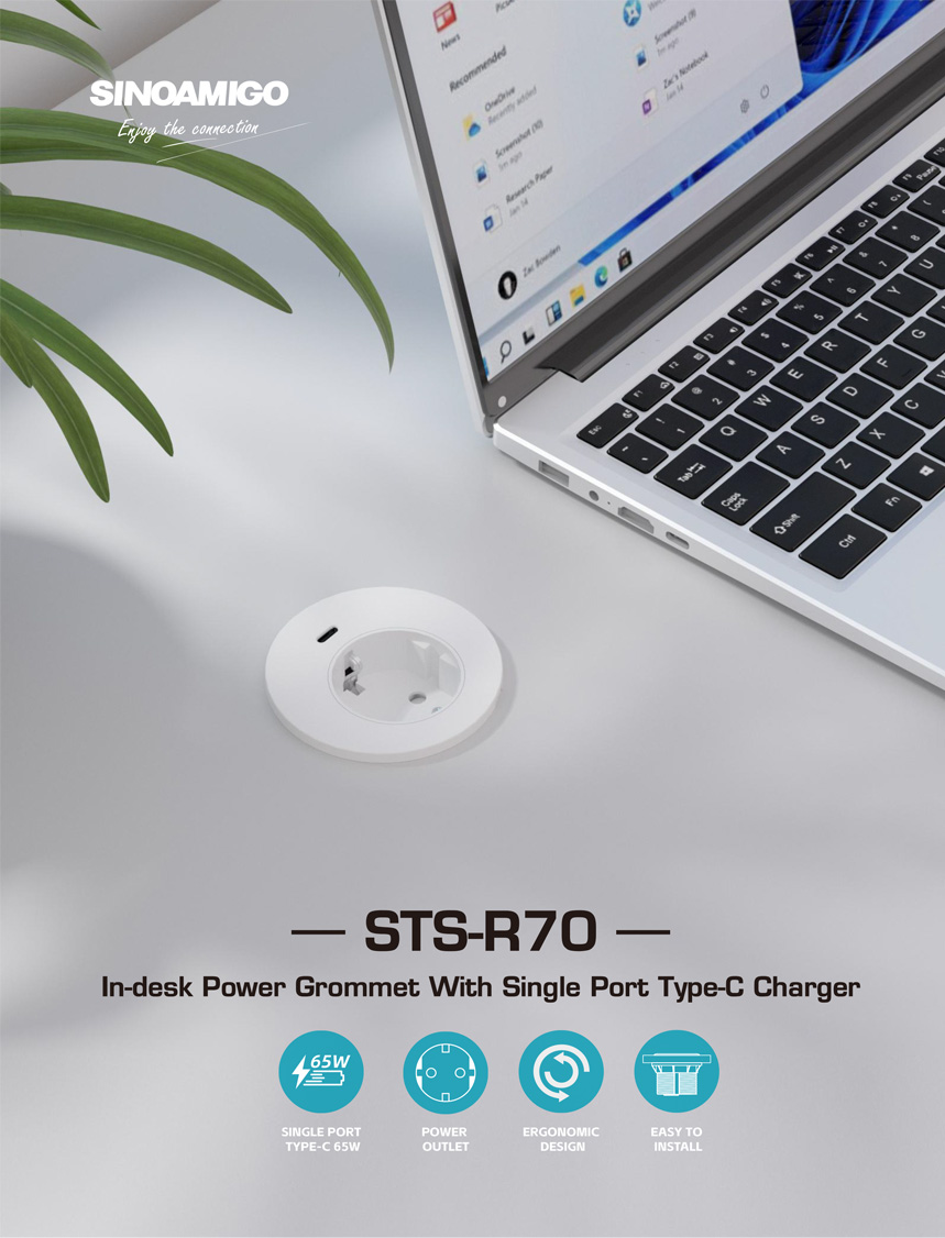 STS-R70 In-desk power grommet with single port 65W USB-C chargerBack >